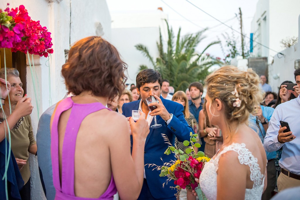 The wedding of Marieta & Thymios took place in Chora, in a traditional small chapel, which is located within the Castle surroundings. The wedding party started the day before the wedding at the Rakentia bar and continued after the wedding, at Chora’s central square. The whole event was organised by the very talented wedding planner Anais (www.lafete.gr)